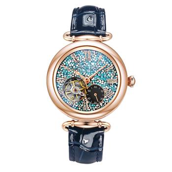 Orologio meccanico completamente automatico da donna con cinturino in vera pelle alla moda Design impermeabile e Display a quadrante