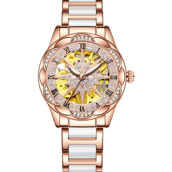 Vendita calda orologio meccanico automatico donna elegante quadrante in ceramica tempo impermeabile con accenti di diamante e funzione di allarme
