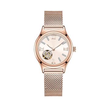 שעון מכני חם של נשים אוטומטי שעון מכני אלגנטי עמיד למים עם מבטאים יהלום ותכונה אזעקה