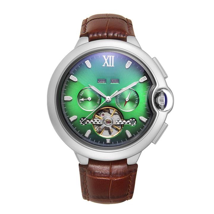 לוח שנה כפול זוהרת & עמיד למים לגברים מכני רצועת עור אמיתי צמיד גדול מותג כתר תצוגה סיטונאי שעון עסקים
